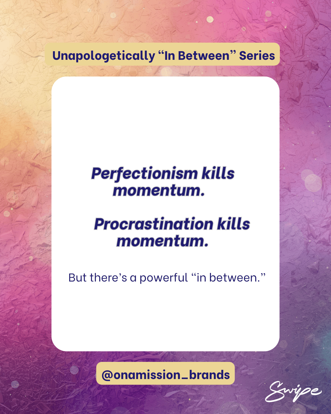 Perfectionism kills momentum. Procrastination kills momentum. But living unapologetically in the in-between? That’s where clarity and movement live. I recently shared how I’m a recovering perfectionist (my mom still says “incurable!”) and why I now publish my podcast every week—even with mistakes. Because momentum matters more than perfection. Which one challenges you most right now: perfectionism or procrastination?